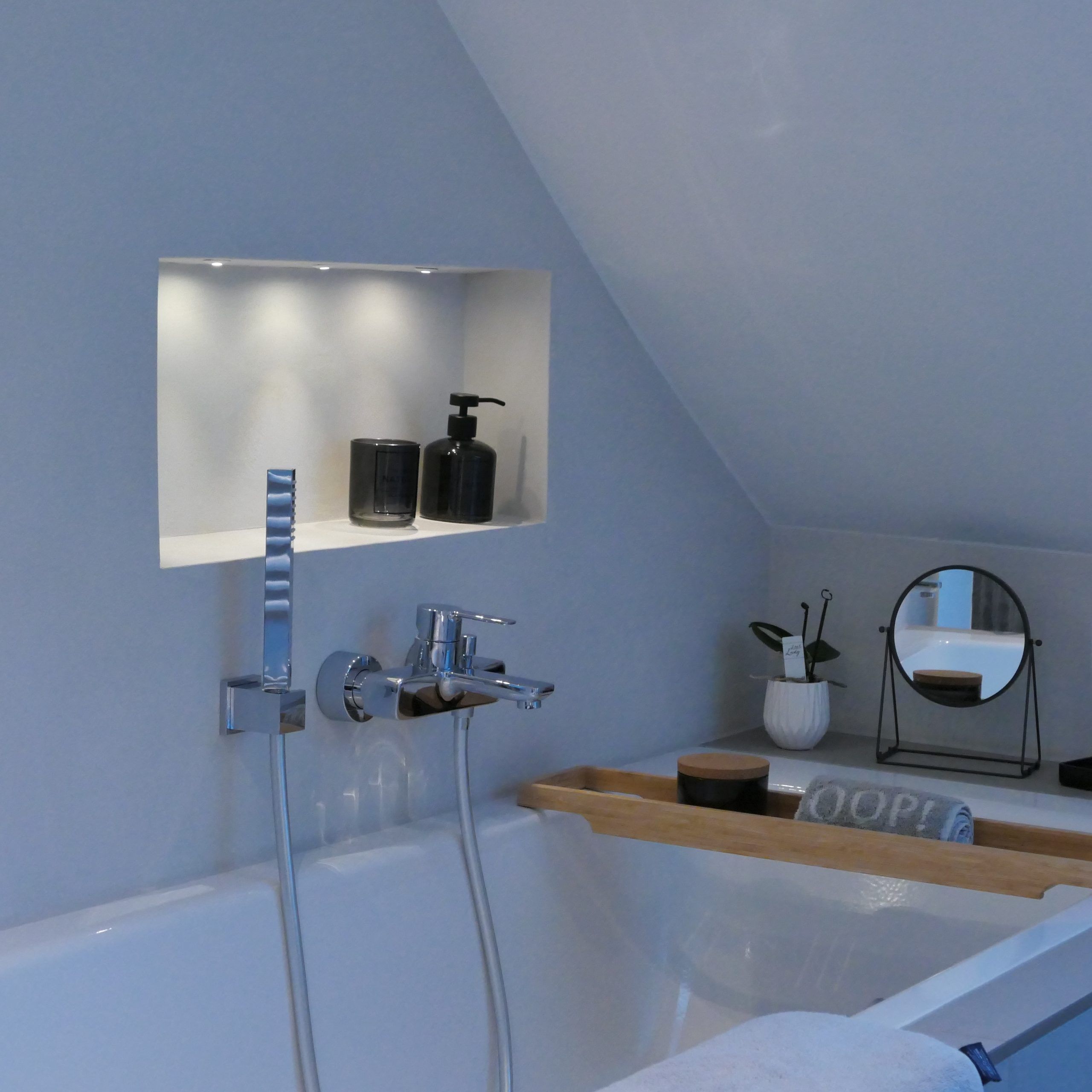 Bei Beschichtungen auf Decke, Wände und Boden lohnt z.B. ein Blick auf hochwertige Farben und Putze aus Lehm und Kalk. Für stärker belastete Bereiche wie Boden oder Duschbereiche verwenden wir mineralische Produkte auf Basis von Kalk und Zement oder Materialien aus anderen naturreinen oder mineralischen Rohstoffen. Die Vorteile geprüfter Produkte liegen dabei auf der Hand: antistatische, feuchtigkeitsregulierende, keimtötende, luftreinigende und wärmespeichernde Wirkung. Manche dieser lösungsmittelfreien Produkte sorgen dank ihrer Zusammensetzung zusätzlich für ein behagliches Raumklima und beugen nachweislich Problemen mit Schimmelpilzen, Allergien und Elektrosmog vor.